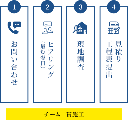 当社はお見積りから施工まで一貫して担当。その際にはお客様専用のチームをつくります。