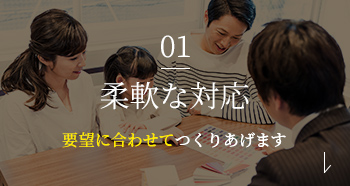 私たちはお客様の理想を叶えるのが使命であり、ともにつくり上げるパートナー。だからこそ気軽に相談できますし、柔軟に対応することが可能です。